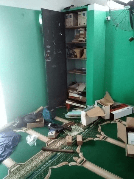Des portes, dont celle du bureau de l’imam, ont été forcées et les différentes caisses destinées à recevoir les quêtes ont vu leurs cadenas brisés et leurs contenus emportés.