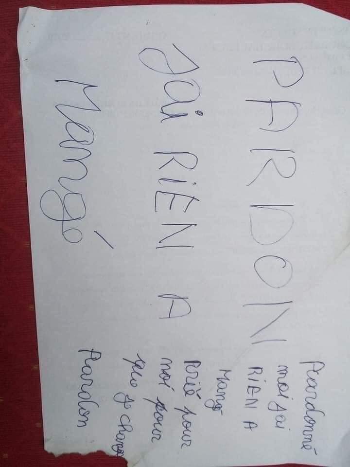 Avant de quitter les lieux, le délinquant a laissé une note censée justifiée son forfait.